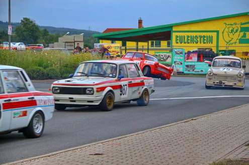 sind ab 19:00 Uhr historische Rennfahrzeuge im Stadtgebiet von Pößneck zu bestaunen.